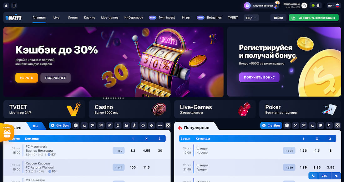 Активируйте приветственный бонус в личном кабинете и выполните условия по отыгрышу. Бездепы и фриспины за регистрацию на официальном сайте 1вин, праздники, активность – подарки будут радовать вас постоянно. Следите за акциями в разделе "Бонусы".